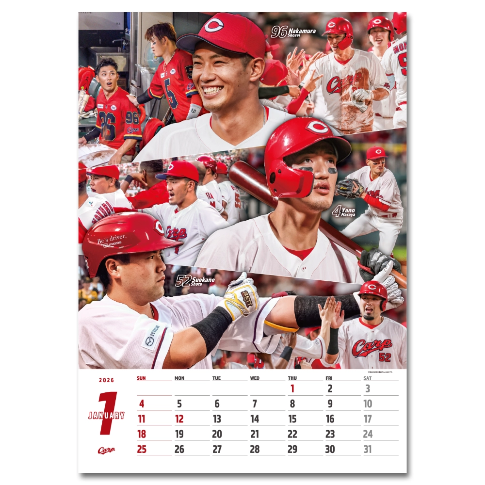 『2026年カープカレンダー』の詳細、球場内グッズショップ以外の取り扱い店舗についてはこちらよりご確認ください。