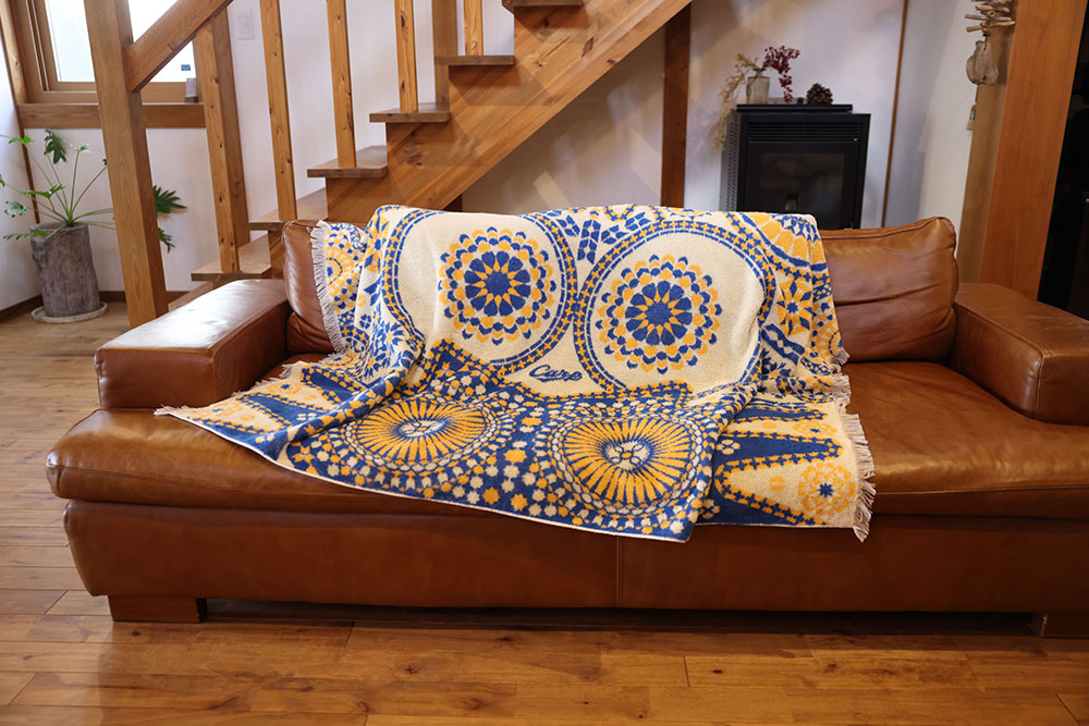 ひざ掛け・ショールの他、ソファに掛けるだけでもインテリアのアクセントとしても活躍してくれる万能アイテムです♪