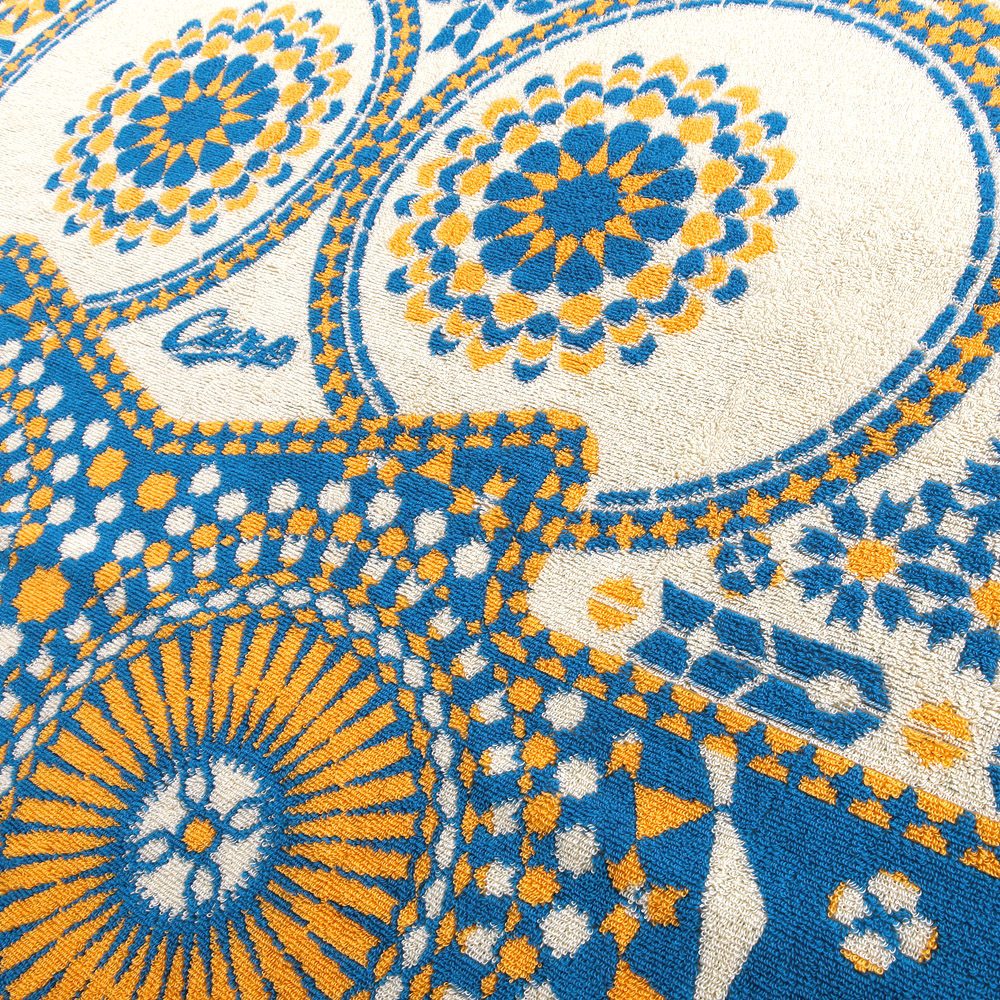 ということで、カープグッズの定番商品である「タオルブランケット」に、モロッコの伝統的な柄「ゼリージュ」を取り入れました!