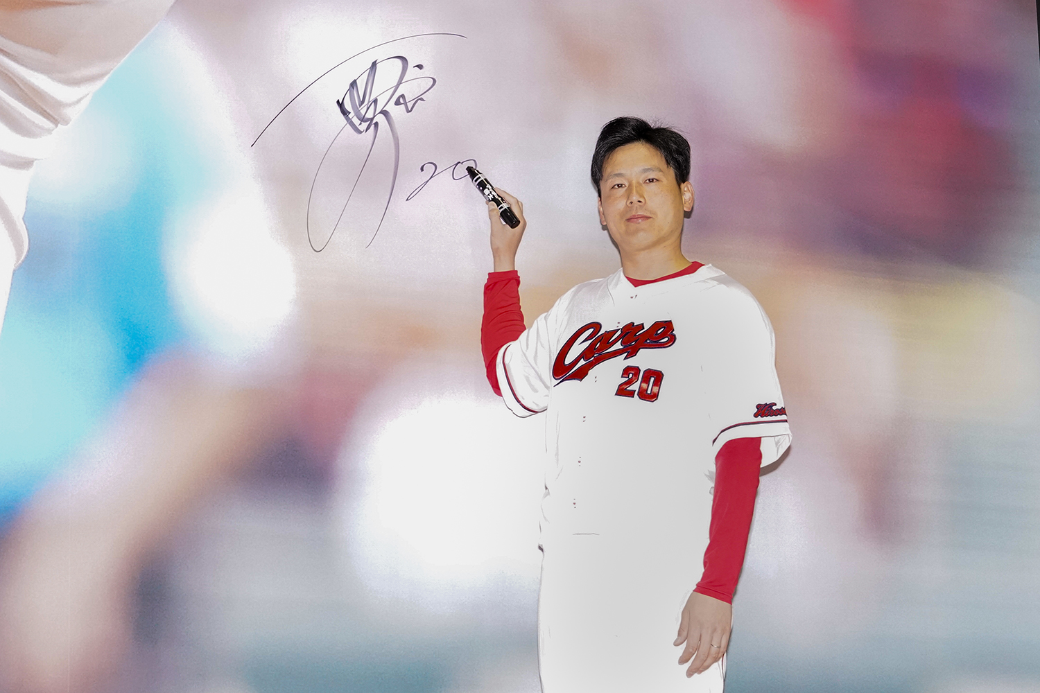 新しく壁面を飾るのは、栗林投手!