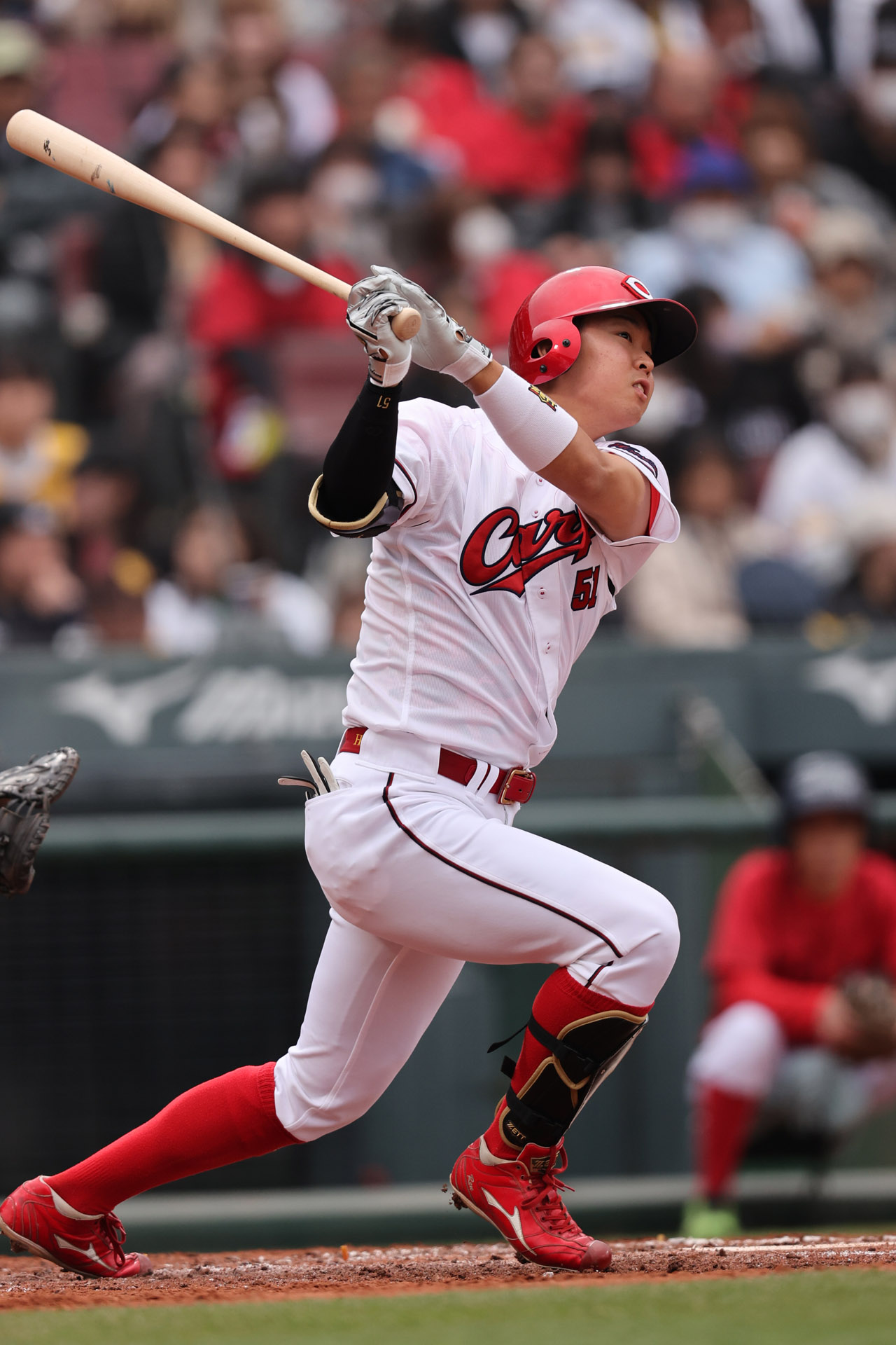 こちらの「若鯉応援Tシャツ(SWITCH HITTER)」は、 明日4月23日(木)よりゲートブリッジ下グッズショップ限定で販売を開始します。