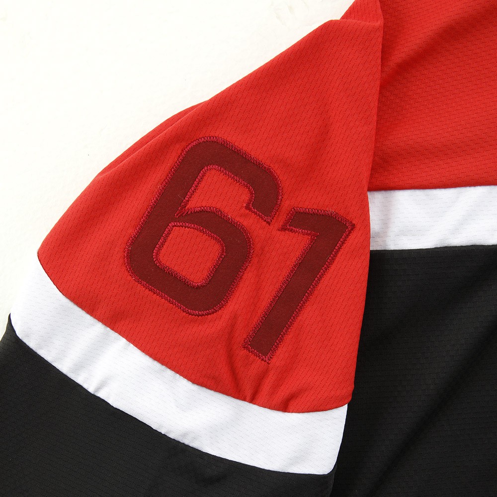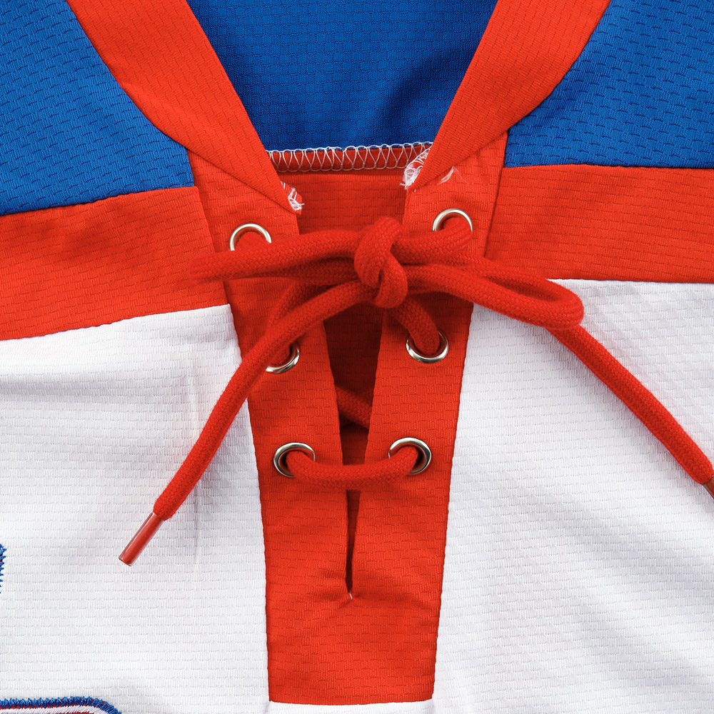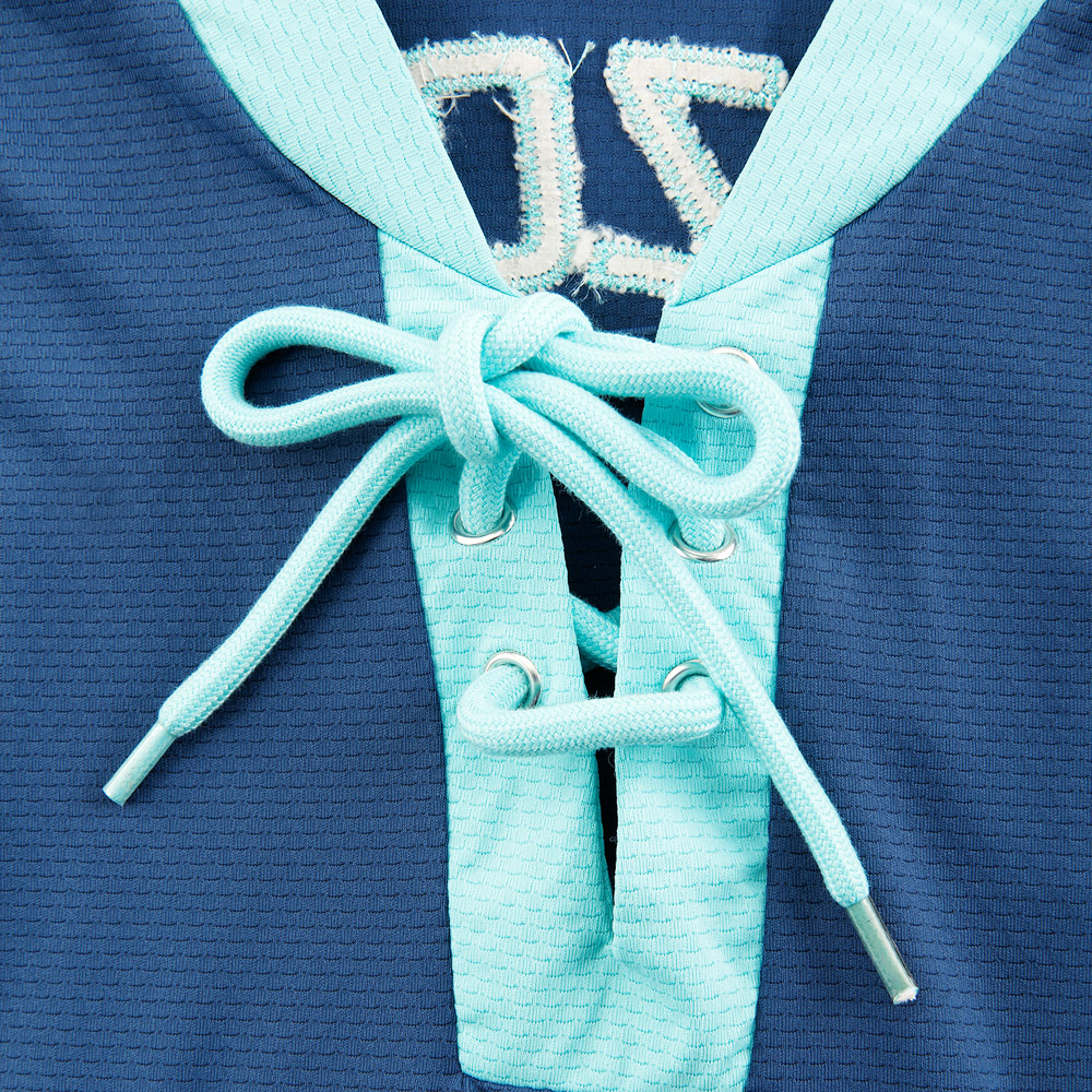 アイスホッケーのユニフォームの特徴でもある仕様で、胸元が紐で結べます。