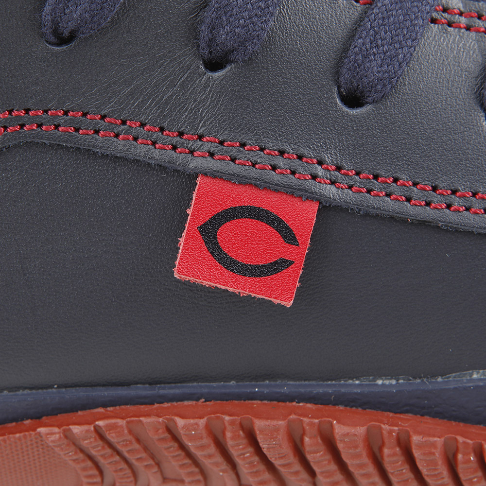 カープテイストを随所に盛り込みながら、ダークネイビーをベースに落ち着いた印象の一足です。