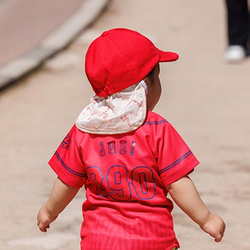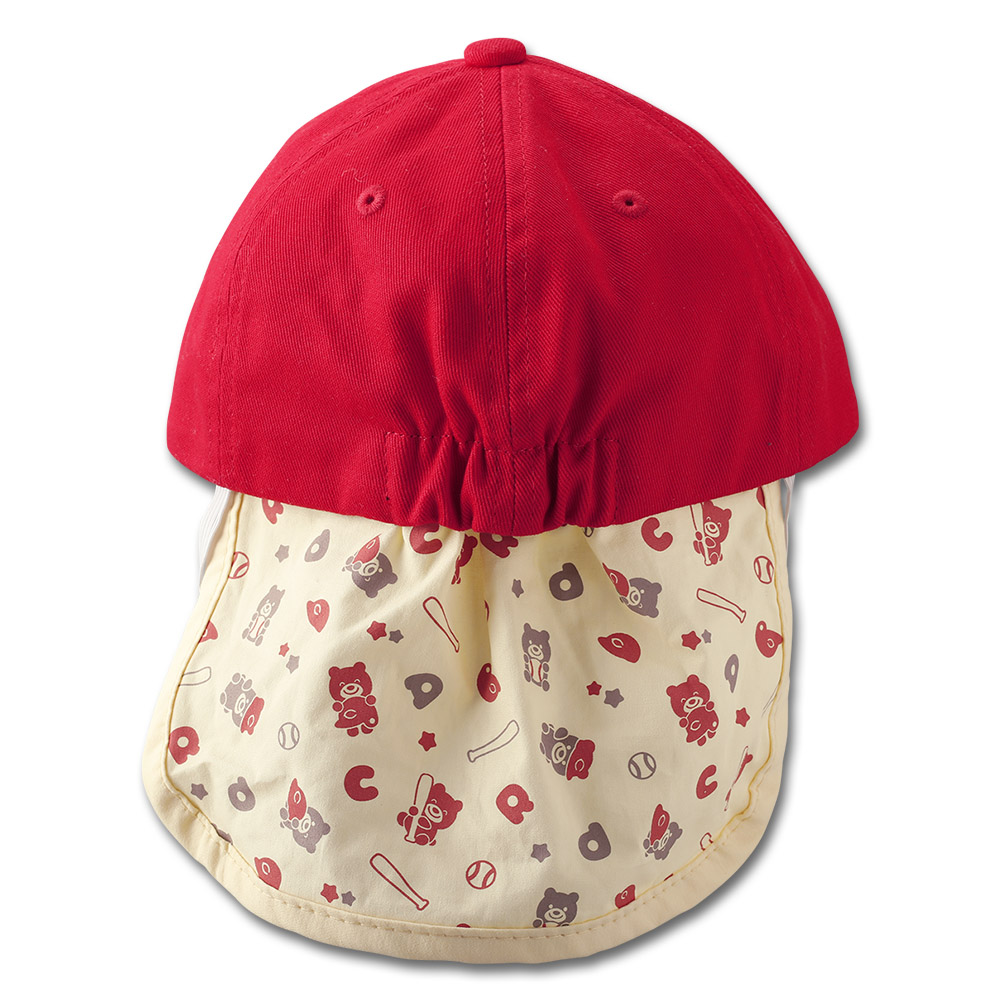 お子さまの首周りを紫外線から、くまさんや野球道具のイラストが描かれたタレがガードします。