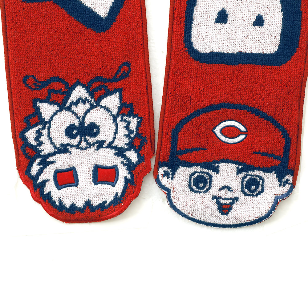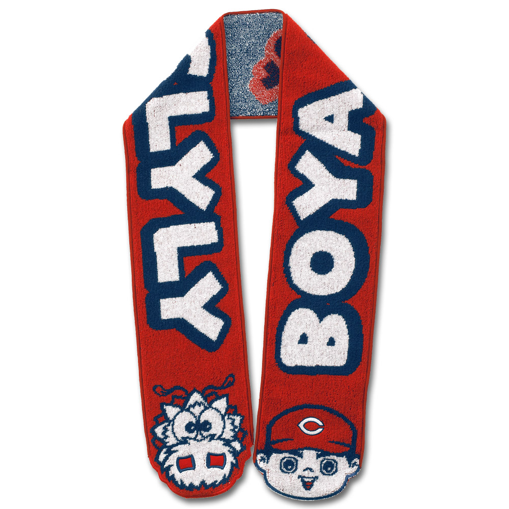 対デザインに、つい笑顔♪ 新たに"ダイカット"のタオルマフラーが登場! タオルの両端をデザインに合わせてカットしました。 首にかけると坊やとスラィリーがかわいいデザイン。 パイル時で肌触りが良くしっかりとしたつくりは、かわいいだけではなく、使い勝手もばっちりです!
