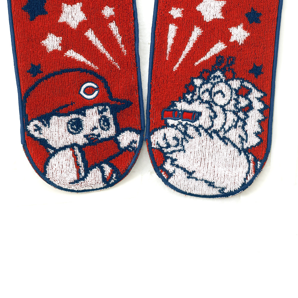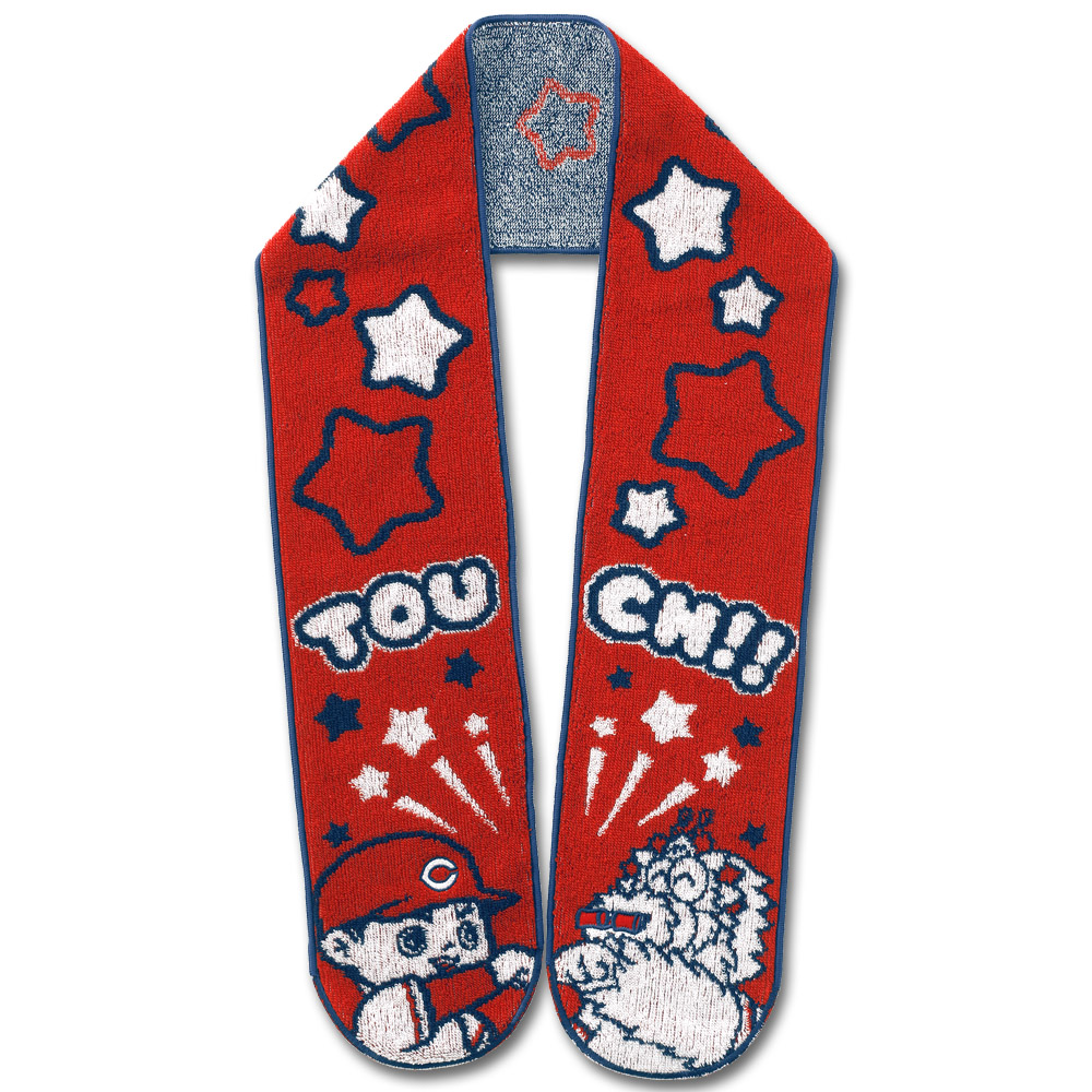 対デザインに、つい笑顔♪ 新たに"ダイカット"のタオルマフラーが登場! タオルの両端をデザインに合わせてカットしました。 肩にかけて前で合わせると坊やとスラィリーがグータッチします。 パイル時で肌触りが良くしっかりとしたつくりは、かわいいだけではなく、使い勝手もばっちりです!