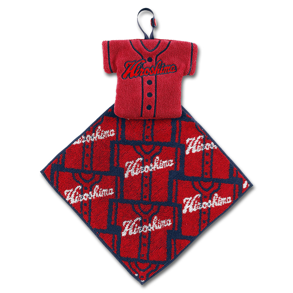 ビジターユニフォームのポーチとユニフォームが敷き詰められたデザインのタオルハンカチの組み合わせがかわいいですね。