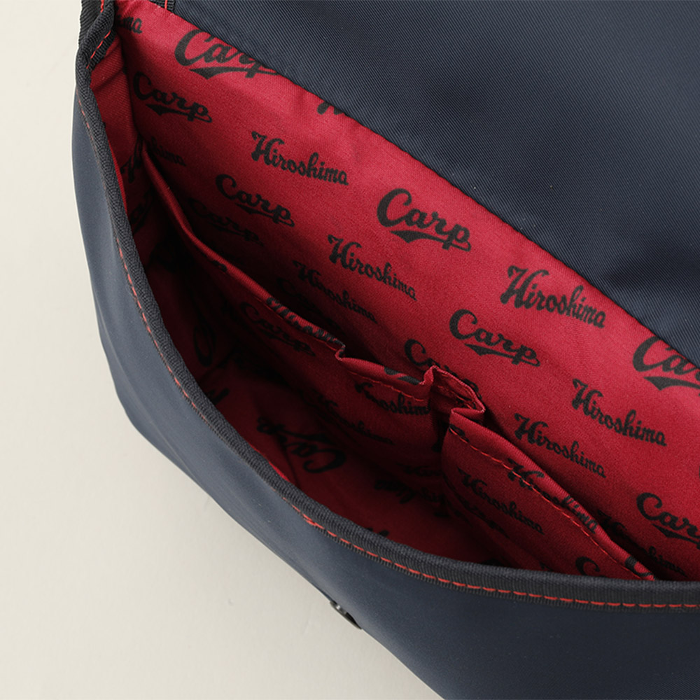 コンパクトでシンプルな見た目ながら、内側は赤色でカープ愛溢れるショルダーバッグ。