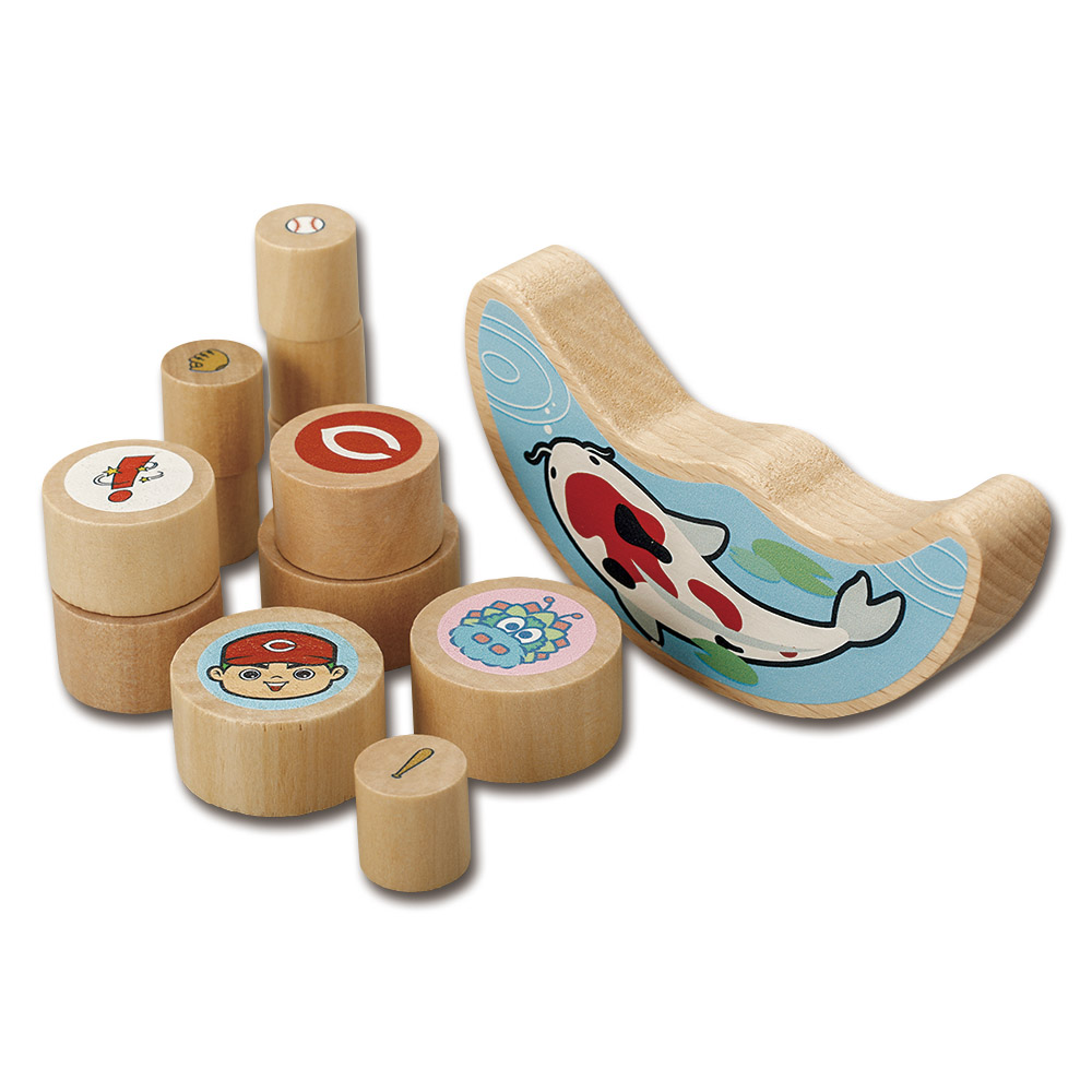 ゆらゆら動く鯉に、まんまるブロックを乗せていくバランスゲームです。