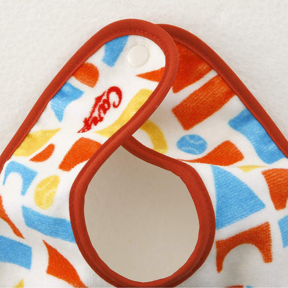 元気に一緒にごはんを食べよう! カープ坊やと積み木が楽しいデザイン。 後ろはスナップボタン式で簡単に取り外しできます!