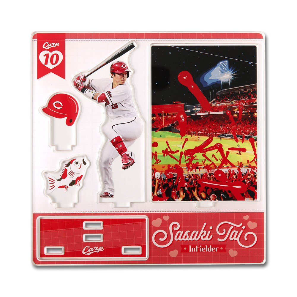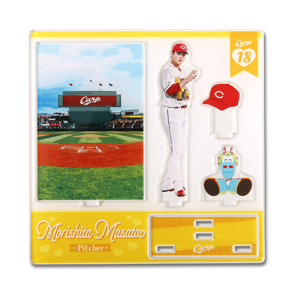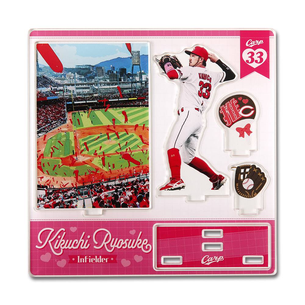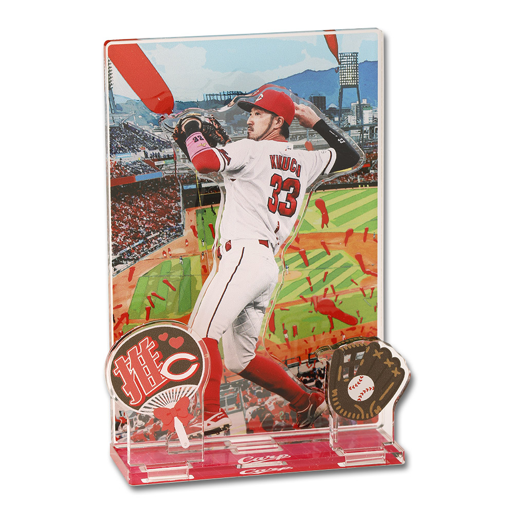 推Cが飛び出す!! 複数のアクリルパーツを組み立てて立体感を表現! 球場の風景をバックに推しを飾れば、まるで試合中のワンシーンみたいです。 カープ要素の詰まったアクリルパーツも付きで推しをしっかり飾ることができます♪