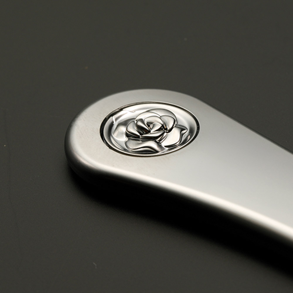 持ち手には柿原工業所在地であるばらのまち・福山市を象徴する「ばら」をワンポイントにデザイン。